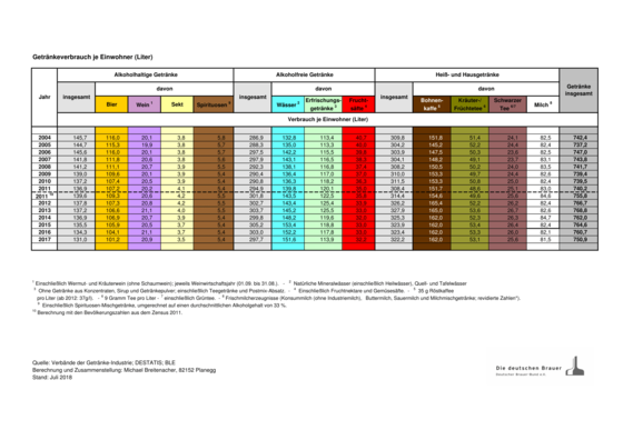 Getränkeverbrauch insgesamt in den letzten drei Jahren um 10 Liter gesunken.
